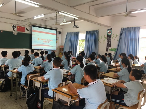 在學校德育處的組織下,溪角中學全校32個班級利用直播平臺為同學們播放了“同舟共濟,檢護明天”網上直播課。