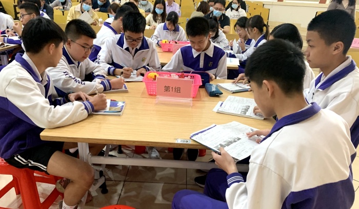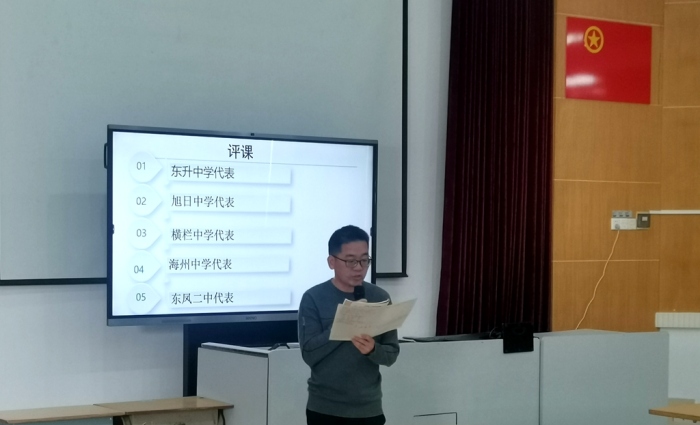 其次,兄弟學(xué)校代表進(jìn)行了評(píng)課,紛紛對(duì)本節(jié)課給予了高度的肯定。東升中學(xué)代表、旭日中學(xué)代表、橫欄中學(xué)代表、海洲中學(xué)代表、東鳳二中代表依次上臺(tái)發(fā)表了對(duì)本節(jié)課的看法和見解,并交流心中在教學(xué)中的疑惑,聚團(tuán)隊(duì)之力,攻克之。