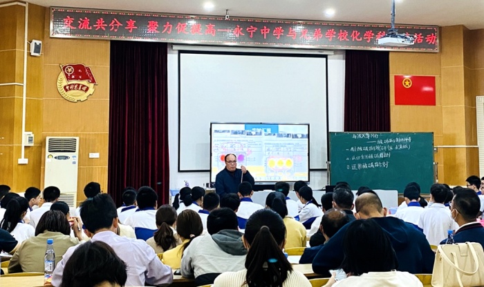 新年伊始,萬象更新,為了加強(qiáng)初中化學(xué)教學(xué)的交流,推動(dòng)化學(xué)課高質(zhì)量的課堂教學(xué)和中考備考,3月4日上午,“交流共分享,聚力促提高”化學(xué)科交流活動(dòng)在永寧中學(xué)階梯室舉行。小欖鎮(zhèn)教體文旅局曾文春副主任、王庚兒專干,古鎮(zhèn)海洲中學(xué)敖萬軍校長(zhǎng),永寧中學(xué)陳清茂校長(zhǎng),中山市橫欄中學(xué)孔凡亮副校長(zhǎng),小欖鎮(zhèn)東升初中馮釗順副校長(zhǎng),以及小欖鎮(zhèn)東升中學(xué)、小欖鎮(zhèn)旭日中學(xué)、中山市橫欄中學(xué)、古鎮(zhèn)海洲中學(xué)、東鳳鎮(zhèn)第二中學(xué)、中山市永寧中學(xué)等學(xué)校化學(xué)老師參加此次活動(dòng)。活動(dòng)由小欖鎮(zhèn)化學(xué)教研中心組組長(zhǎng)黃瑞芳老師主持,主要有四個(gè)環(huán)節(jié)。
