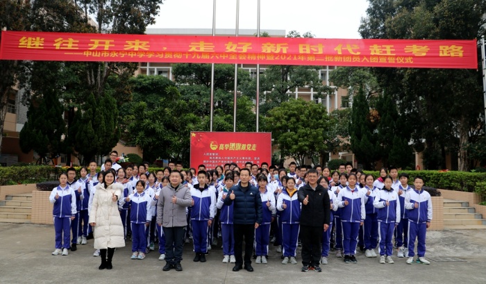 12月28日上午,為深入學習貫徹黨的十九屆六中全會精神,推動黨史學習教育進一步走深走實,引導廣大團員青年自覺從黨的光輝歷史中汲取砥礪奮進的精神,永寧中學在學校運動場舉行“繼往開來,走好新時代趕考路”——中山市永寧中學學習貫徹十九屆六中全會精神暨2021年第二批新團員入團宣誓儀式,全體師生共1500多人參加了本次活動,活動由校團委副書記陳煥然主持。
