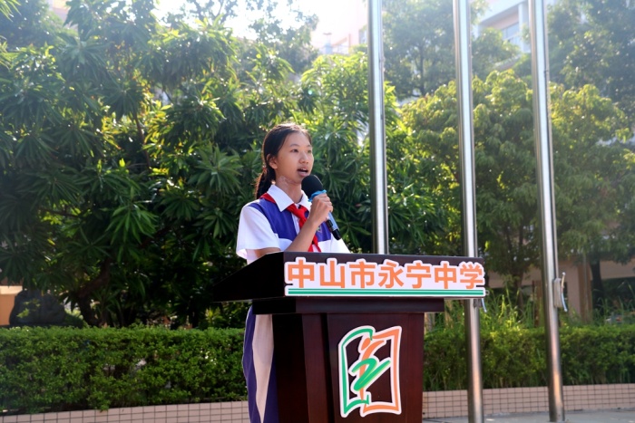 10月11日上午,永寧中學在升旗儀式期間舉行“請黨放心,強國有我”——喜迎少先隊中山市第八次代表大會少先隊微儀式,全體師生參加了微儀式。