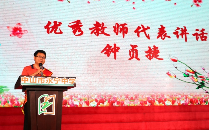 活動最后,由優秀教師代表鐘貞捷老師講話。他表示:將繼續努力把自己練就成一名好老師,擔當起黨賦予的“讓每個孩子健康成長、辦好人民滿意的教育”的重任。