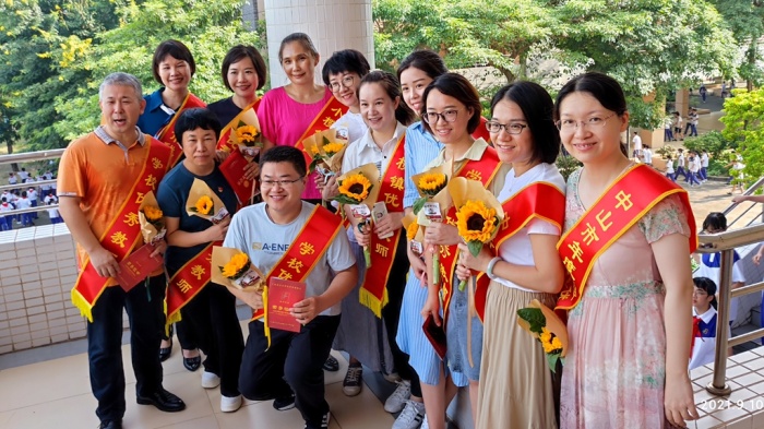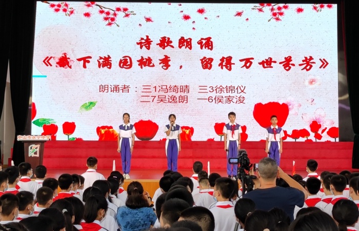 接著,少先隊員和團員代表向老師們獻詞,深情朗誦《載下滿園桃李,留得萬世芬芳》。情真意切,令人動容,學生們的深情頌恩令老師們臉上洋溢著發自內心的、難以自抑的激動和幸福。