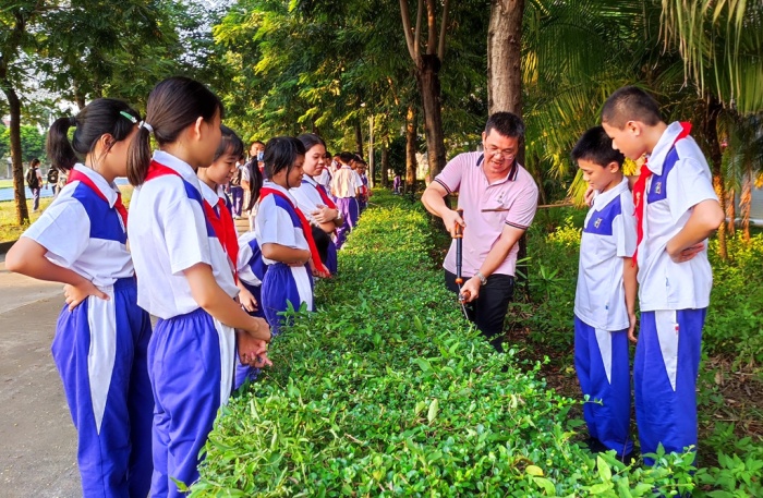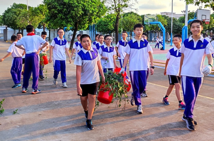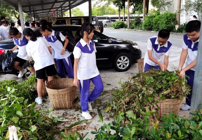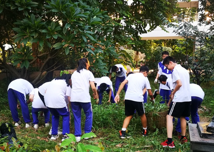 在校園的園藝基地,同樣熱鬧有序,同學們以班級為單位分小組分散開,在班主任和指導老師的指引下,撿落葉枯枝、除雜草、修剪花木。瞧!同學們撿落葉時的樣子多認真,彎下身來仔細尋找,有的撿了滿滿的一筐,有的還撿到了許多的樹枝條,還有的發現了被遺落在角落的片片塑料袋......雖然雜草很多、垃圾很多,很臟很亂,但是每個同學都能仔細尋找到每個角落,他們不怕臟,不怕累,都積極地參與其中。修剪花木的同學更是像模像樣,手拿著大剪刀,商量、測準、用力、清理,個個都像園藝師傅。雖然陽光仍舊刺眼,但也阻止不了同學們的熱情,看到整潔的基地,干凈的園區,同學們露出了開心的笑容。