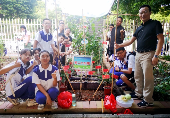 在校園東西角上有一景致優美,綠意盎然的“農業莊園”——勞動教育種植實踐基地,熱鬧非凡,各班種植小組的學生們在勞動教育實踐指導老師的指導下,鋤地、除草、澆水、施肥、撿落葉、精心養護著本班的種植基地,有的采摘蔬菜或瓜果等,收獲上學期勞動成果,忙碌并快樂著。其實,平時各班輪值的同學一有時間就會走進種植實踐基地,或澆水,或松土,或捉蟲,隔三差五地施施肥。或者什么也不做,只是站立基地一角,看勤勞的蜜蜂在花葉間飛舞、采蜜,聽不知名的昆蟲藏身何處清幽地鳴唱。清新的泥土氣息,淡雅的蔬菜清香,讓同學們在感悟勞動中的美,體驗勞動的樂趣。