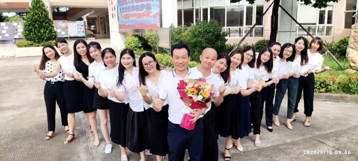 金秋九月,碩果芬芳,空氣中彌漫著感恩的氣氛。在這個洋溢著豐收喜悅的季節里,永寧中學全體師生懷著激動和喜悅的心情迎來了第36 個教師節。慶?;顒釉趯W生代表向全體教師獻花中拉開帷幕,永寧中學黨支部書記、校長陳清茂同志宣讀了表彰決定,蔡栩月等53位老師分別獲得市級、鎮級、校級等多項榮譽,獲獎老師身披禮儀帶上臺接受了頒獎。陳清茂校長在講話中表示:“在2019-2020學年度,永寧中學全體教職員工在習近平新時代中國特色社會主義思想的指引下,立德樹人,認真踐行社會主義核心價值觀,緊緊圍繞學校教育事業發展五年規劃努力工作。老師們以強烈的事業心和飽滿的工作熱情,在疫情防控工作中迎難而上,堅持奮戰在抗擊疫情和停課不停學、不停教兩條戰線上,用愛心和智慧點亮了學生的人生夢想,彰顯了永中老師的高尚師德與責任擔當?!倍虝憾≈氐幕顒咏Y束后,全體師生又立刻投入到緊張的教育教學活動中去。