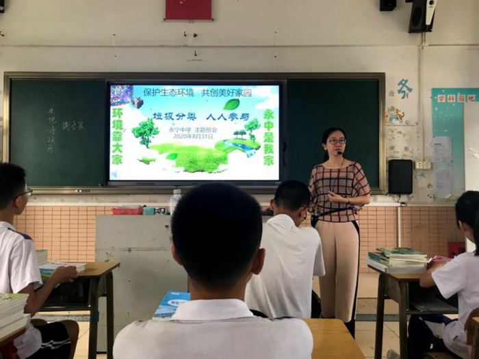 推進垃圾分類工作是創建文明城市重要的一環,美化居住環境,減少污染,變廢為寶。為努力推動學校的垃圾分類工作,樹立綠色低碳、環保的生活理念,中山市永寧中學師生都非常重視,并且一直在積極推進垃圾分類工作,8月31日下午師生回校的第一天,各班級專門召開“垃圾分類我先行,中山城市更文明”教育主題班會,讓垃圾分類真正落實在日常生活中去。