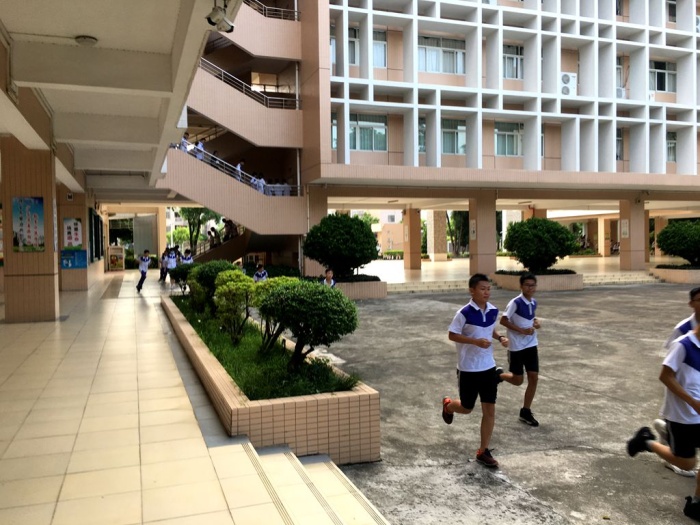 上午9點40分,隨著警報聲響起,各工作人員迅速到達指定崗位。接著,黃小平主任下達了“學校發生緊急情況,請全體師生立即有序安全撤離”的命令,各班學生在班主任的組織下,沿著學校指定樓梯口、疏散路線迅速安全有序地撤離到運動場安全地帶,用時3分15秒,達到學校預定時間。隨后,各班主任快速清點好人數并向應急疏散演練副總指揮楊青華副校長報告,在此次演習中,全校1600多名師生全部安全疏散,學生們做到了下樓梯時動作迅速,不爭吵,不擁擠,從容不慌,井然有序。