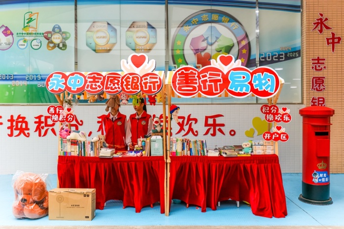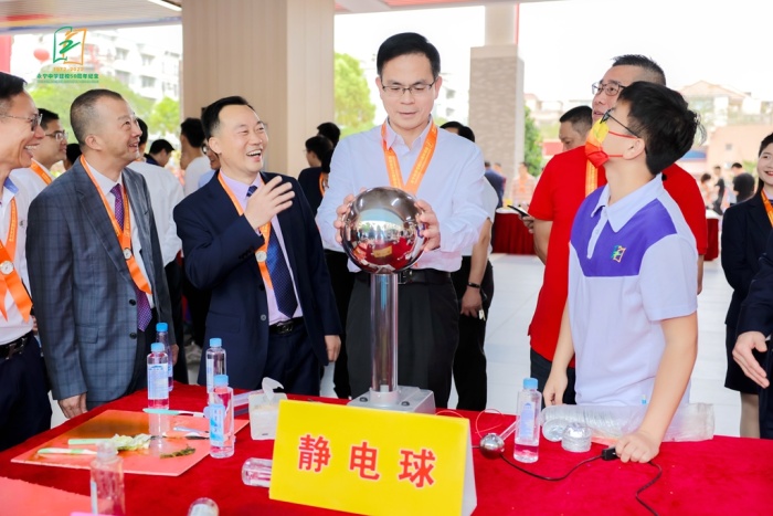 校園嘉年華活動既展示了永寧中學的辦學特色和辦學成就,又讓校友們參與其中,精彩紛呈,讓校友嘉賓們流連忘返。即席揮毫潑墨區,小欖鎮書法家協會的書法家和欖山八友的藝術家們,現場揮毫潑墨。藝術家們氣定神閑,談笑風生,頃刻間一幅大作塵埃落定,讓人嘆為觀止。才藝展演區,校友和學生同臺演出,節目形式多樣,有古箏表演、獨唱、舞蹈、薩克斯演奏,表演聲情并茂,舞姿翩翩,可謂星光璀璨。懷舊游戲區,大人小孩爭先恐后地玩著游戲,有跳房子、踢毽子、滾鐵環、跳大繩,不亦樂乎。科組互動展區有航模、車模、版畫、剪紙、熱轉印產品等,栩栩如生,惟妙惟肖。老師們正在帶領學生進行科技試驗,引來眾多參觀者饒有興趣地駐足觀看。科組靜態展區,匯集了學校的辦學成果和特色。嘉賓們徜徉在特色展區,感受著永寧中學的特色文化,對永寧中學的辦學成就和師生們的科技創新贊嘆不已!永中志愿銀行是永寧中學的一塊德育金字招牌,開戶、寫信、積分換物、有獎問答等4個不同的展位,人頭攢動,讓“善行換積分,積分換歡樂”的理念已經深入人心。