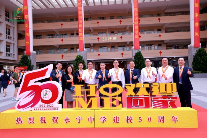 “風雨兼程勇毅前行矢志育桃李,披荊斬棘踔厲奮發齊心創輝煌。”3月19日上午,中山市永寧中學隆重舉行50周年華誕慶典活動。校園花團錦簇,彩旗飄揚,鑼鼓喧天,人頭攢動,成了一片歡樂的海洋。中山市教育和體育局副局長姜術俊、小欖鎮黨委書記趙錫雄、小欖鎮黨委副書記全國、小欖鎮黨委委員梁銳強、副鎮長司徒兆宙等市、鎮領導和嘉賓,以及永寧社區領導、捐贈企業代表和社會熱心人士、小欖鎮中小學、幼兒園校長(園長)、離退休教師、曾在永寧中學工作過的老師們、各屆校友代表、永中家委會和家長代表等近1500人出席了慶典活動。