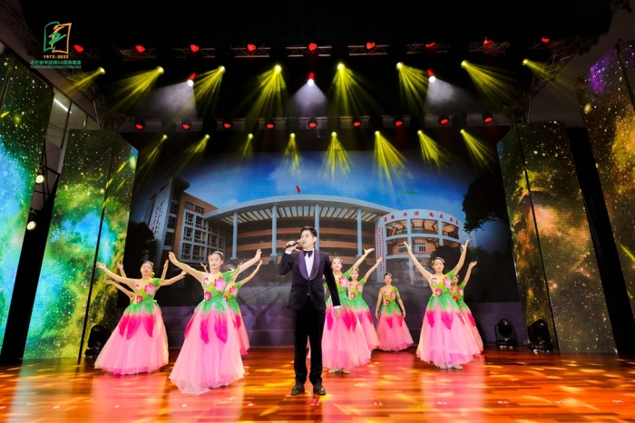 接著,永寧社區黨委書記、校慶籌委會主任伍錦華致辭,伍書記代表籌委會介紹了一年來極不尋常、極不平凡卻又極富成效的校慶籌備工作,介紹了捐贈情況以及校園文化軟硬件環境升級改造實現的目標,并代表永寧社區黨委、居委會衷心感謝永中校友、社區鄉賢、熱心企業的身體力行、團結奮斗實現宏偉藍圖的大愛,感謝市鎮領導的關懷。祝愿永寧中學明天會更好,鑄就新輝煌!校友代表、校慶籌委會顧問駱建華在致辭中回顧了在母校求學的美好記憶,難忘老師的教誨之恩,讓其在簡陋的學習環境中,不畏艱難、嚴謹助學、發奮努力、立志成才。他敬祝母校賡續輝煌、桃李芬芳,恭祝老師青春永駐、幸福安康,祝愿同學們各呈異彩、擁抱明天!梁銳強委員對永寧中學五十周年校慶表示熱烈祝賀,對學校五十年來的辦學成就表示肯定和贊賞,并鼓勵全體教職工繼續牢記初心使命,開拓創新,把永寧中學建設成為一個素質教育的楷模、人才輩出的搖籃、崇尚創新的典范。