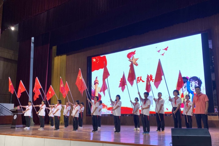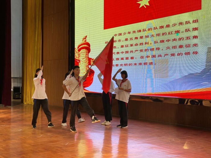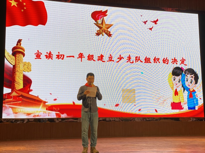 活動在奏唱國歌、出隊旗和唱隊歌中拉開序幕。首先,該校少先隊大隊輔導員楊勇宣讀了《初一年級建立少先隊組織的決定》, 并勉勵各中隊在大隊委的帶領下,積極開展豐富多彩的少先隊活動,使該校少先隊工作開創新局面;