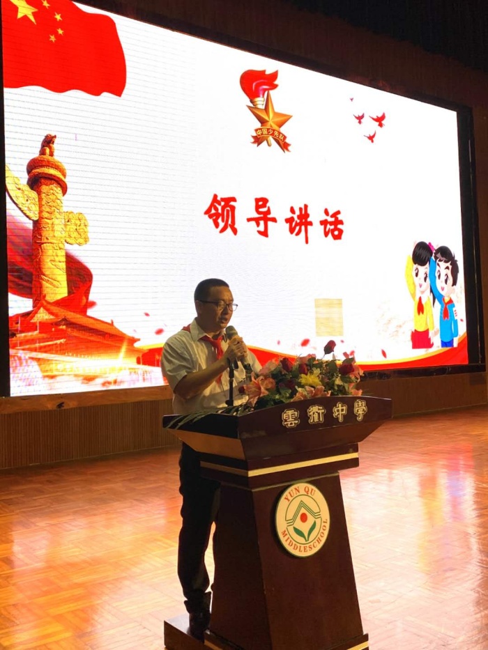 緊接著,由副校長曾建清發表了講話,曾校長在講話中提到希望少先隊員們能夠一直記得當初帶上紅領巾的那份激動,記得自己心中默默許的那個愿望,并且要告誡自己:身為一名光榮的中國少先隊隊員,應為胸前的紅領巾增光添彩!熱愛祖國,熱愛人民,熱愛中國共產黨,樹立遠大理想,增強體魄,勤奮學習,從小學先鋒、長大做先鋒,努力成長為能夠擔當民族復興大任的時代新人!