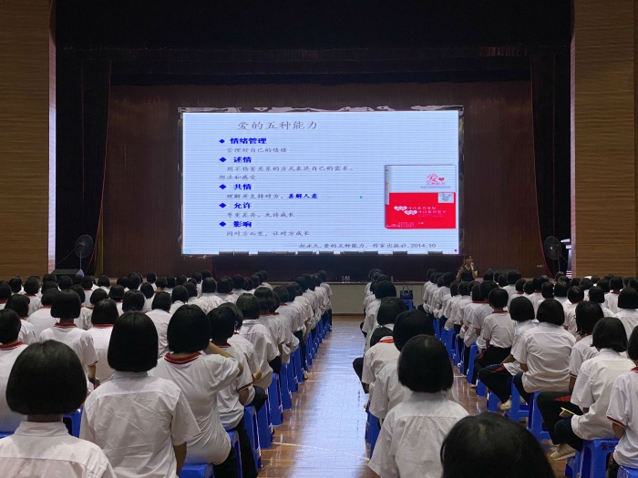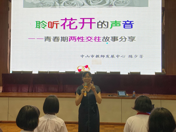 隨著年齡的增長,進入青春期的女生在心理和生理都發生了重要的變化,在女生們對待兩性交往的問題上也需要著重的引導,為提高未成年人預防性侵害的案件發生,提高未成年人的防范意識,正確處理兩性交往問題,云衢中學在9月30日的下午,邀請來自中山市教師發展中心陳少芬老師為初一女生開展專題為《聆聽花開的聲音—青春期兩性交往故事分享》的講座,學校德育處副主任周寶思主持會議。