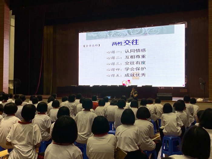 此次講座陳老師用豐富的事例、故事、視頻等向學生講述關于愛和交往的問題和知識,在各話題分享交流會中,初一女生都很積極的分享自己的見解和心得,得到了陳老師的贊賞,相信此次的講座對云衢中學初一女生來說,有了啟發性的思考和懂得如何處理兩性交往的問題,學會預防和遠離性侵害,學會保護自己,讓自己健康成長。