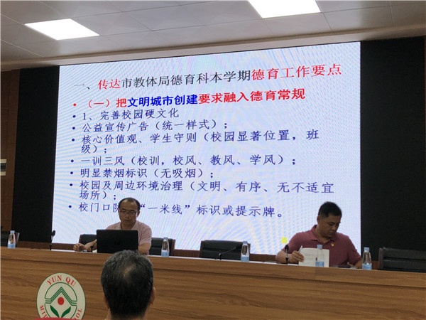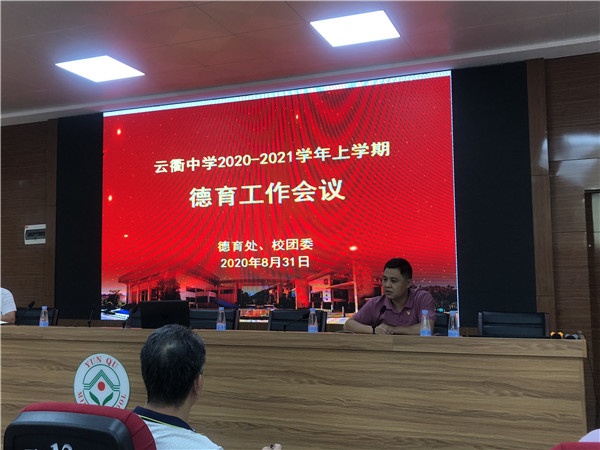 新學期、新目標、新開始。8月31日下午,云衢中學召開新學年全校德育工作會議。會議由莫景超主任主持,校級行政、全體德育行政、各德育年級主任及全體班主任參加此次會議。