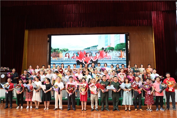 接下來,為學生發展而辛勤付出的全體初三教師、行政領導、教官代表走上舞臺,接受學生代表獻上的鮮花。“人面鮮花相映紅,”手捧鮮花,老師們既喜悅又感動,為又一屆學子的畢業與成長而喜悅,為風雨同舟、一路走來的學子的進步而感動。接著進行了初三畢業生為母親捐贈儀式和愛心文明班的表彰,曾建清副校長和周寶思主任共同為愛心文明班頒獎。
