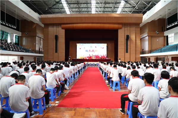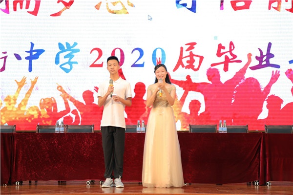 一年年春華秋實,一載載桃李芬芳。在火熱的七月,又到一年畢業季,又是學子離別時。7月27日上午,云衢中學初三年級師生、教官、家長代表在學校藝體中心集會,舉行了“懷揣夢想,自信前行”2020屆畢業典禮。云衢中學彭柳芳校長、曾建清副校長、王義國副校長偕全體行政參加了畢業典禮,初三6班的陸文烙、初三7班的廖海燕、初三8班的許泳嵐三位同學擔任主持人。