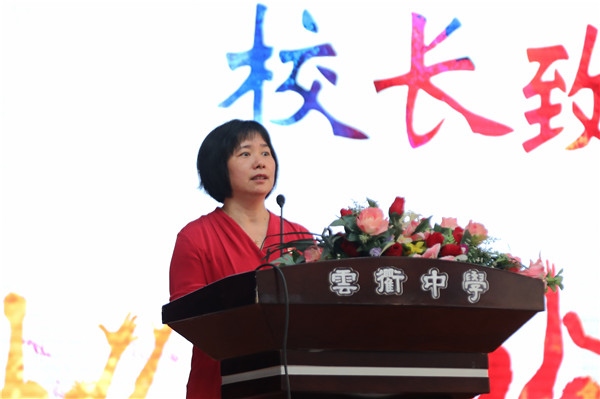 畢業典禮在雄壯的國歌聲中正式拉開帷幕,首先全校師生通過視頻共同回顧初中三年來的生活和學習。接著彭柳芳校長致辭,彭校長祝賀云衢學子們順利畢業,今年年初面對突如其來的疫情,改變了同學們不一樣的校園時光,但沒有改變的是同學們奮發學習,勤于圓夢的決心,肯定與表揚了初三畢業班師生所付出的努力。在彭校長語重心長的致詞中希望同學們自律奮進,自律是戰勝一切迷茫的良藥;要求真尚美,早立志,立大志,磨煉自己,培養高遠的志趣;要感恩奉獻,把云衢中學“愛的教育”理念傳承下去,做一個擁有愛的力量的云衢人。最后彭校長歡迎同學們常回母校,母校永遠是同學們溫暖的家。