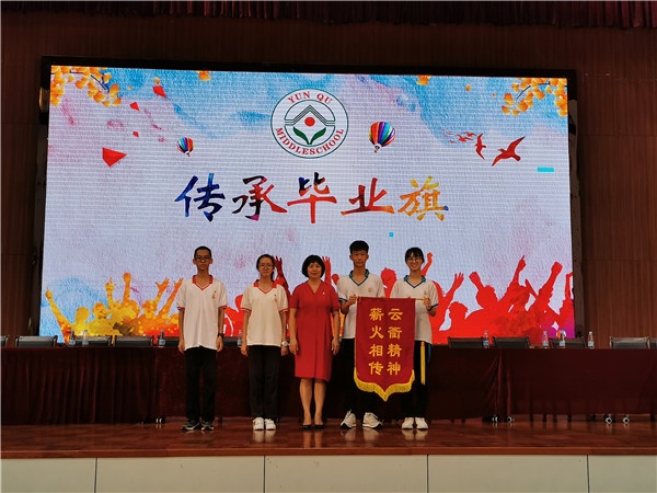 嚴、勤、創、美,云衢精神,薪火相傳,代代不息。彭柳芳校長與初三代表葉思齊、林鈺榆同學及初二代表劉鈺昕、譚嘉寶同學傳承畢業旗。當初二同學代表接過畢業旗時,現場的師生家長再一次被深深感動。已走過211年風雨歲月的云衢中學弦歌不輟,它就像一棵參天大樹,歷經歲月而愈發根深葉茂。“愛的教育”是云衢中學踐行多年的辦學特色,2020屆畢業生在離校前夕自發踴躍為母校捐出愛心款,總數達到19680.25元。