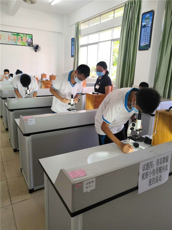 6月22日一早,工作人員有序地組織學生排隊候考,現場抽簽確定考題,接著進入試室;監考老師認真負責,學生細致、認真,沉著應考。在考核過程中,所有考生都能夠按防疫要求全程戴口罩,實驗前后洗手消毒,認真按要求進行實驗操作,規范使用實驗儀器,記錄實驗結果。主管教學的王義國副校長和孟戰軍主任到現場督導考核工作的進行,生物科組的李冰、謝婉、田立威、李金寶、邱國東、黃金妹、劉新忠七位監考老師認真負責觀察學生的實驗操作是否規范,根據《中山市2020年初二生物實驗操作考核評分標準》客觀地給學生評分。實驗結束后,考生把實驗考核卷提交并離開實驗室。此次考核,學生的動手操作能力和實驗探究能力得到了充分檢驗,也展現了云衢中學學生對科學實驗的嚴謹態度。