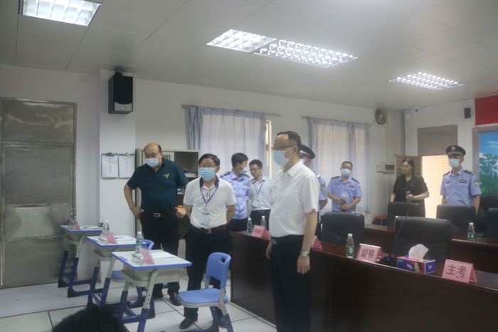 6月6日下午,中山市副市長、公安局局長魯罡在市教育和體育局局長彭曉新,市公安局副局長王勇以及東區(qū)公安分局有關(guān)負責人的陪同下,來到中山市實驗中學檢查高考考點準備工作。