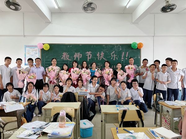 為弘揚中華民族尊師重教的傳統美德,由學校德育處、團委牽頭開展“三尺講壇書寫粉墨卓山·一顆丹心一生秉燭鑄魂”教師節主題教育活動。每個班級班委策劃一次簡單而隆重的活動,在教師節里為敬愛的老師獻上自己真誠的祝福。在老師們的辦公室里可謂熱鬧非凡,只見各班的同學們手拿著自己早已準備好的鮮花與小禮物紛紛送給自己的老師,一聲又一聲的“老師,您辛苦了,謝謝你,祝您節日快樂!”在整個辦公室里回蕩,場面溫馨而感人,讓老師們十分感動。許多老師在收到學生送給自己的鮮花與禮物時都十分高興,臉上都露出了燦爛的笑容。自己也情不自禁的拍拍學生的肩膀,對學生的祝福表示感謝,師生情感真情流露。在課堂上同學們也利用多媒體平臺為老師送上祝福,送上節日的慰問,場面溫馨而讓人感動。