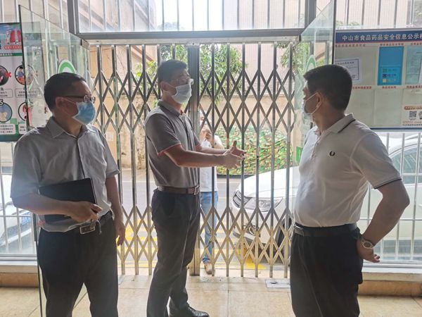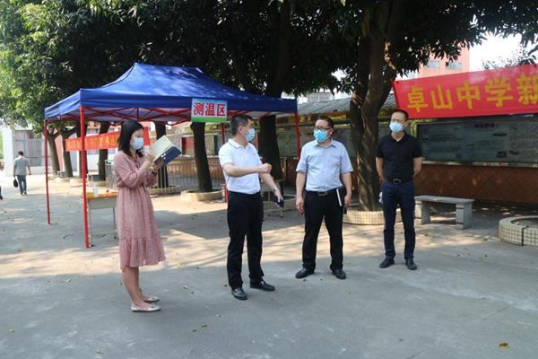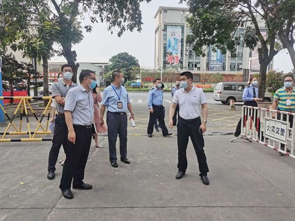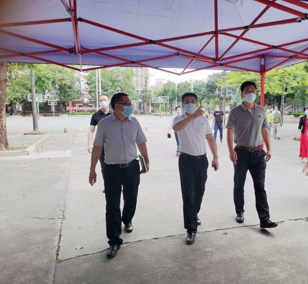 21號上午九點,中山市大涌鎮鎮長、專班工作組組長賀修虎帶隊檢查卓山中學防控措施落實情況和開學準備工作。