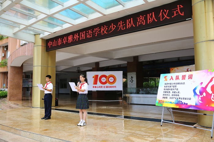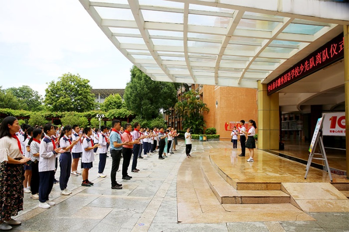卓雅外校黨支部書記龍起達、校長李雄杰、副校長李文、小學部學生處主任兼少工委總輔導員楊文娟、中學部團委書記李凌霄等參與活動,共同見證隆重熱烈、意義非凡的離隊儀式。