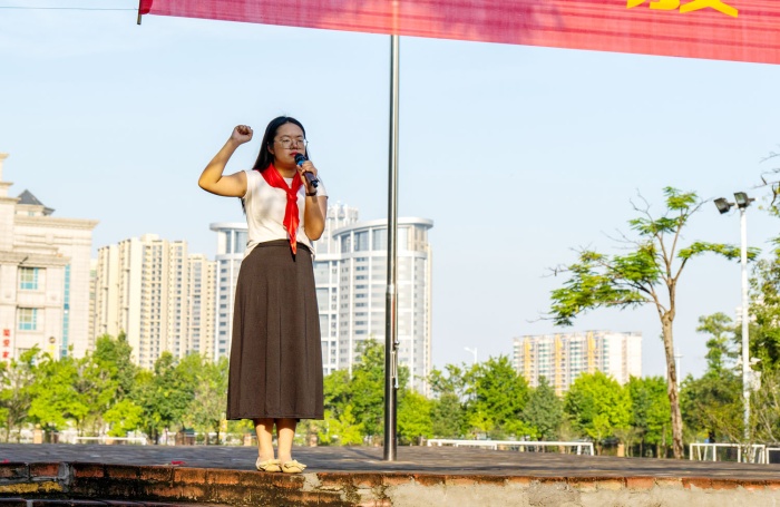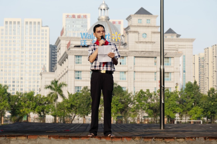 微儀式上,學校黨支部書記龍起達發表講話,號召新隊員時刻牢記習近平總書記的教導,以英雄模范人物為榜樣,從小堅定聽黨話、跟黨走的決心,刻苦學習、樹立理想,努力實現德智體美勞全面發展。