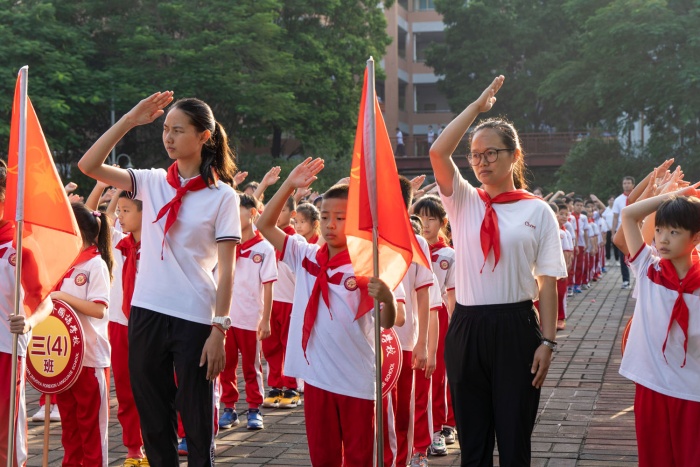 在中國少年先鋒隊建隊72周年之際,為深入學習習近平總書記“七一”重要講話精神,培育少先隊員們熱愛黨、熱愛祖國、熱愛家鄉的崇高理想,10月11日上午,中山市卓雅外國語學校舉行“請黨放心、強國有我”喜迎少先隊中山市第八次代表大會少先隊微儀式。