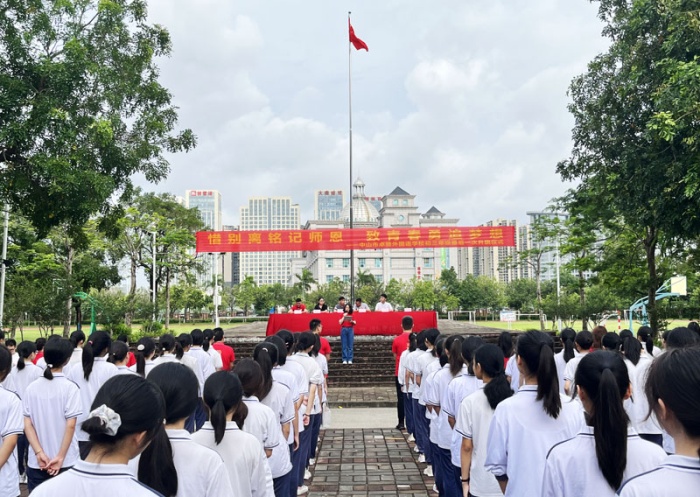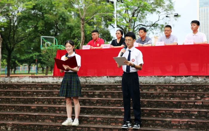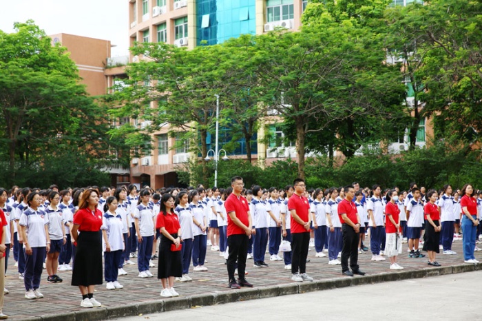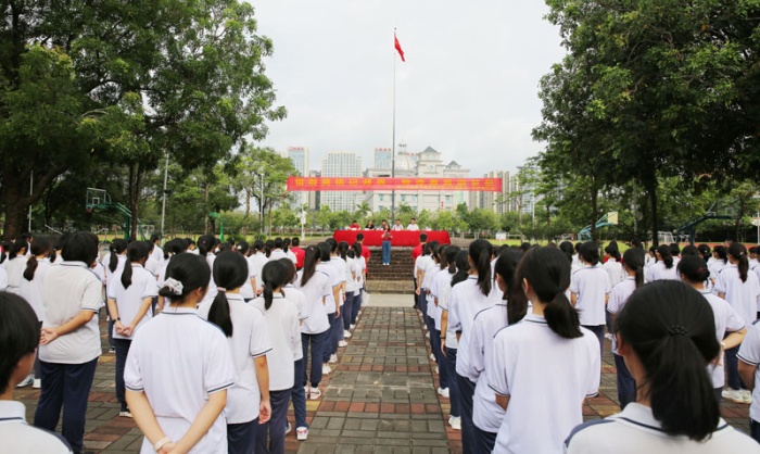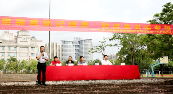 卓雅外校校長李雄杰、副校長兼初中部校長李文、初中部副校長韓瑞云、藝體中心主任方學(xué)軍、初中部學(xué)生處主任鄒旭、團(tuán)委書記李凌霄及初中部全體師生參加升旗儀式。