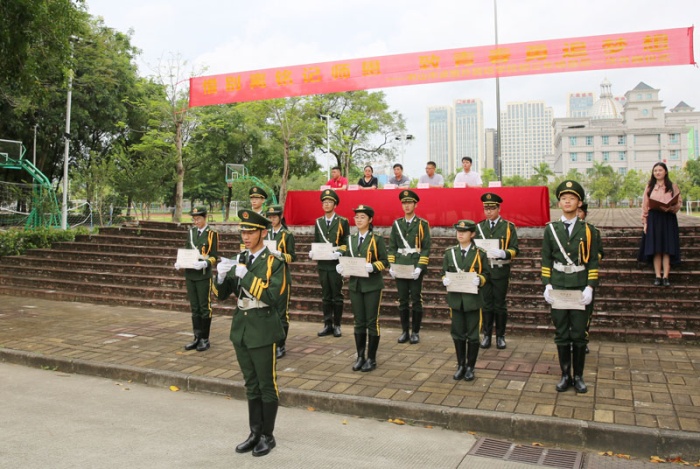 儀式還表彰了成功完成升旗任務(wù)的11名九年級(jí)校國旗隊(duì)隊(duì)員,校長李雄杰為同學(xué)們頒發(fā)榮譽(yù)證書,為圓滿完成國旗隊(duì)訓(xùn)練任務(wù)的許光輝安全主管頒發(fā)榮譽(yù)證書,向他們的辛苦付出表示感謝。