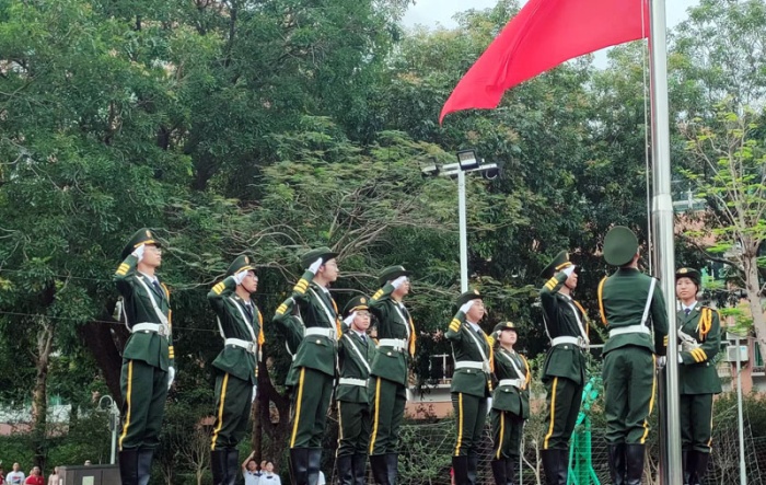 伴隨著清晨的第一縷陽光,升旗儀式正式開始,卓雅外校國旗隊(duì)11名隊(duì)員步伐慷鏘,在雄壯的《義勇軍進(jìn)行曲》中,鮮艷的五星紅旗冉冉升起。