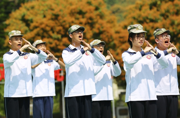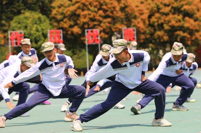 3月6日下午,卓雅外校高一年級軍訓(xùn)結(jié)業(yè)典禮在五桂山國防教育訓(xùn)練基地舉行,500余名學(xué)生組成的匕首操、軍體拳、手語操以及特戰(zhàn)方陣在會操表演中先后登場,他們精神飽滿、氣勢磅礴、口號嘹亮,經(jīng)過七天的軍事化訓(xùn)練,圓滿完成了軍訓(xùn)任務(wù)順利結(jié)業(yè)。董子博、邱智軒、黃振華等120名同學(xué)被評為“優(yōu)秀學(xué)員”,軍訓(xùn)3班、5班、9班榮獲軍訓(xùn)成果評比特等獎。國防教育訓(xùn)練基地部長鄧海強、卓雅外校高中部校長畢文龍等出席結(jié)營儀式并為優(yōu)秀集體及個人頒獎。