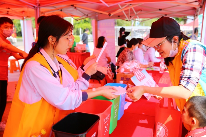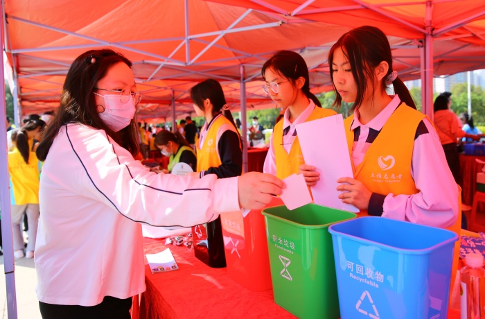 卓雅外校團委書記李凌霄擔任此次活動的主持人,她介紹說,3月5日是第60個學雷鋒紀念日,組織學生志愿者在便民服務攤位協(xié)助開展“垃圾分類”、“美麗河涌”志愿服務,是為了讓同學們以實際行動學習和踐行雷鋒精神,弘揚志愿精神,豐富志愿服務形式,增強青年團員的貢獻意識。