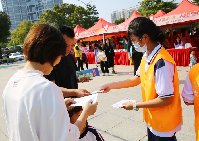 八年級(2)班茹佐昊說,第一次派發(fā)傳單沒有經(jīng)驗,一開始不是很順利,只是簡單的傳遞沒有其他的介紹,逐漸的我開始向大家介紹關于節(jié)水、環(huán)保的知識,讓自己更加大膽了。七年級(5)班謝詩琪說:“我們班的班訓是‘讓身邊的人因為而感到幸福’,今天的志愿服務,正好是這句話的踐行。”謝詩琪希望年輕一代能用自己的行動將雷鋒精神傳承下去,參與到各類志愿服務中,為社會公益做貢獻。