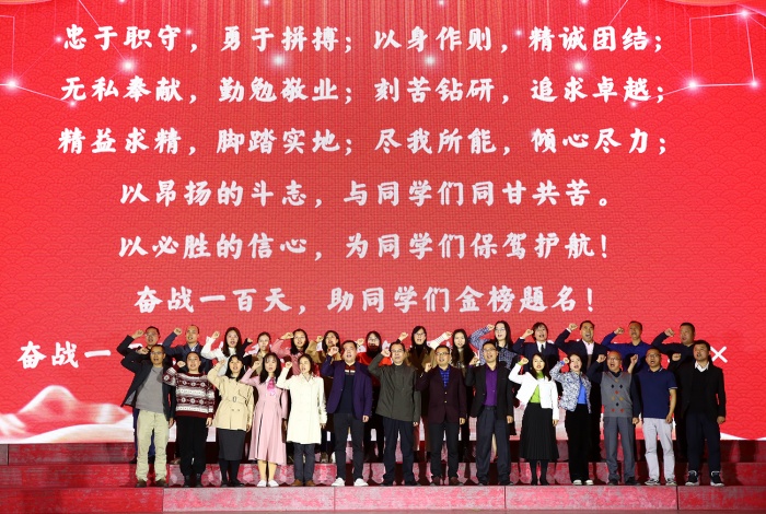 為鼓舞高三年級(jí)全體師生的斗志,卓雅外校校長(zhǎng)謝柏祥將“高考必勝”旗幟授予高三年級(jí),高三年級(jí)級(jí)長(zhǎng)熊四鵬揮舞旗幟,與全體師生高呼“高考必勝!高三加油!”謝柏祥與全體高三教師走上主席臺(tái),緊握右拳,鄭重宣誓,表達(dá)卓雅外校老師對(duì)學(xué)子們期望。