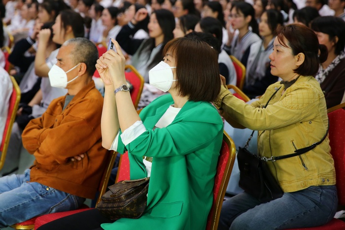 儀式上,同學(xué)們觀看了高三年級(jí)精心制作的成人禮視頻《成長(zhǎng)的足跡》,高三年級(jí)的老師以及家長(zhǎng)代表也錄制了視頻,將滿滿的祝福送給高三的學(xué)子們,高三年級(jí)的同學(xué)們也傾情朗誦詩(shī)歌,表達(dá)對(duì)父母、老師的感謝。“今天非常感動(dòng),看到孩子成長(zhǎng)的點(diǎn)滴,看到老師們對(duì)孩子們的愛,心里暖暖的。”高三(4)班劉杰的媽媽在活動(dòng)過(guò)程中笑得合不攏嘴,為劉杰的長(zhǎng)大成人感到高興,也對(duì)他的未來(lái)充滿希望。高三(3)班林浩權(quán)的爸爸媽媽捧著煲好的排骨湯來(lái)參加孩子的成人禮,希望他能嘗到家的味道,感受到爸爸媽媽對(duì)他的支持。高三(6)班王枝音的媽媽忙前忙后幫孩子拍照,記錄下每一個(gè)非常有意義的瞬間,她說(shuō),孩子的成長(zhǎng)源于父母的不斷支持和老師的諄諄教誨,看到她步入成年人的世界,心情喜憂參半,希望她在遇到困難時(shí),不氣餒不退縮,勇敢邁向充滿未知而又精彩的人生。