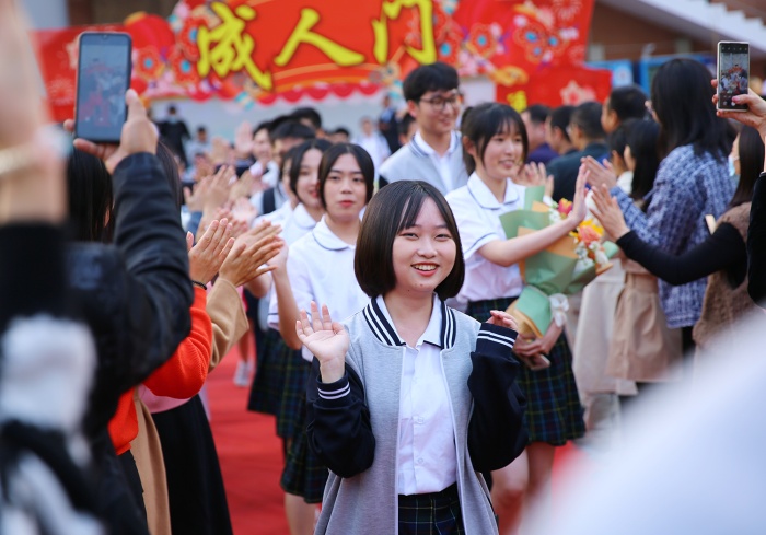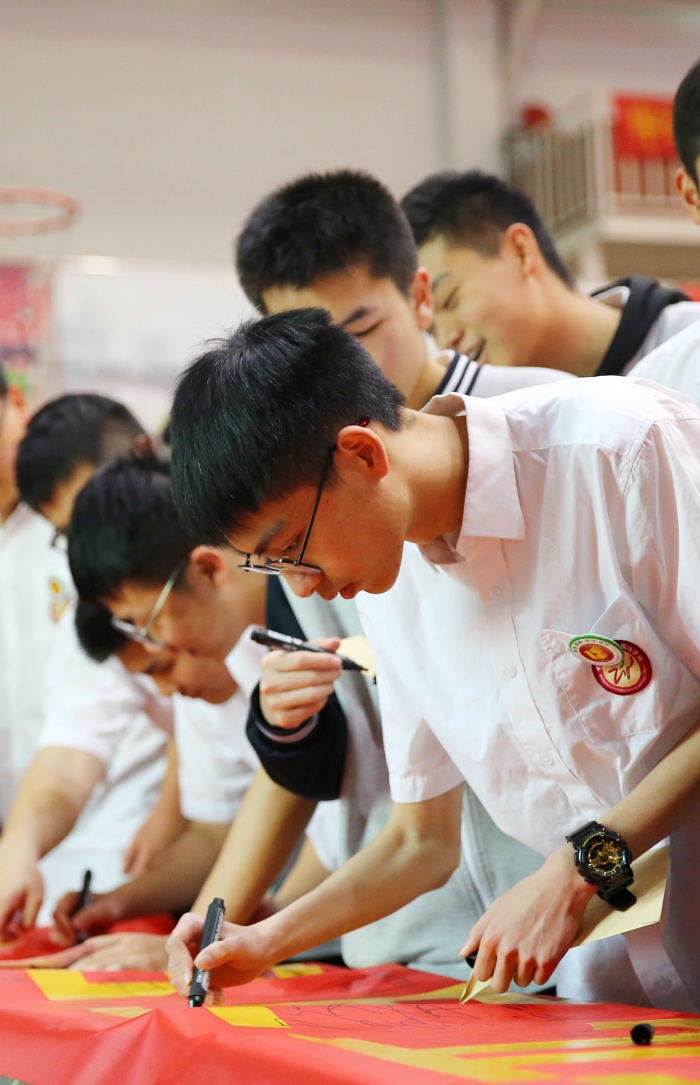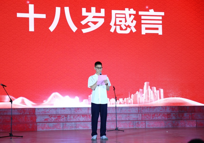 “十八歲,意味著責(zé)任、擔(dān)當(dāng)、挑戰(zhàn)、夢(mèng)想,十八歲的我們,不僅是一個(gè)已經(jīng)具有完全行為能力的公民,更是新時(shí)代的青年,是希望,是未來(lái),是力量和脊梁。”高三年級(jí)學(xué)生代表蘭雨柯在發(fā)言中對(duì)父母十八年來(lái)的愛和付出、對(duì)老師們的諄諄教誨、不辭勞苦表示感謝,他希望同學(xué)們銘記父母和老師的期望與囑托,不負(fù)青春,不負(fù)責(zé)任,在最后的一百天中完成涅槃,實(shí)現(xiàn)自己的高考?jí)粝搿?/p>