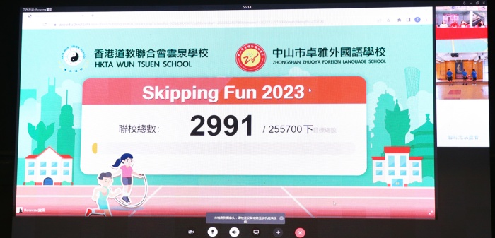 2月24日,中山市卓雅外國(guó)語(yǔ)學(xué)校與香港道教聯(lián)合會(huì)云泉學(xué)校聯(lián)合舉辦“繩聯(lián)香港 交流共進(jìn)”線上跳繩馬拉松活動(dòng),通過(guò)觀看花式跳繩表演、一分鐘跳繩比賽,增進(jìn)兩校師生之間的交流,展現(xiàn)兩校師生的精神風(fēng)貌。卓雅外校校長(zhǎng)謝柏祥、高中部校長(zhǎng)畢文龍、小學(xué)部校長(zhǎng)李園萍等出席本次活動(dòng)。