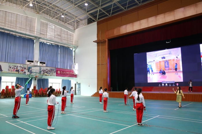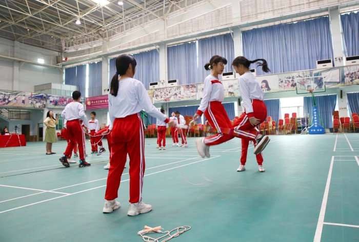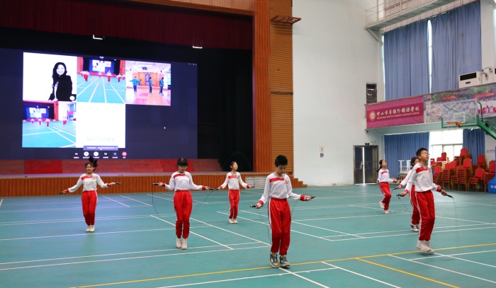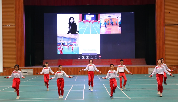 活動(dòng)中,兩校學(xué)生通過(guò)網(wǎng)絡(luò)媒介的方式使用電子跳繩進(jìn)行跳繩比賽。“預(yù)備、跳!”繩影翩躚,腳下生風(fēng),輕如燕飛,賽場(chǎng)上呈現(xiàn)出一片歡騰的景象。在交流活動(dòng)中,兩校學(xué)生舒展了身心,提高了技能,品嘗了跳繩運(yùn)動(dòng)帶來(lái)的快樂(lè),感受到為集體爭(zhēng)光的責(zé)任感、使命感。