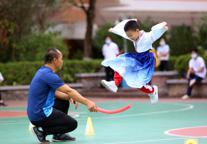 “體育課讓我耳目一新,關天曉老師將有趣的游戲融入到課堂的各個環(huán)節(jié),孩子們在玩中學、在玩中練,參與感和積極性都很好。”一年級(1)班邱珉超爸爸在觀摩了兩節(jié)課后,對老師豎起了大拇指,他說,卓雅小學部的課堂更注重以學生為主,課堂氛圍輕松,師生互動非常默契。