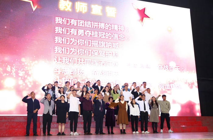 “不負父母期盼,不負恩師厚望,全力以赴,苦戰百天,名題金榜!”3月18日,初中部舉行九年級中考百日誓師大會,367名九年級學子緊握右拳鄭重宣誓,向一百天后的中考宣戰、立誓。