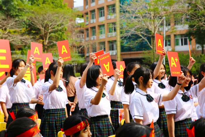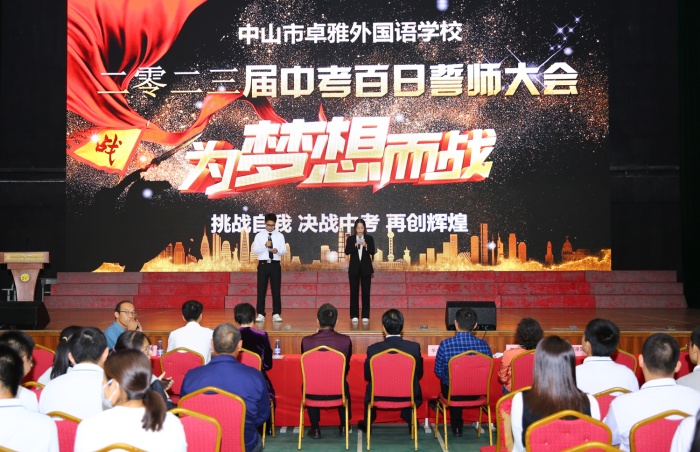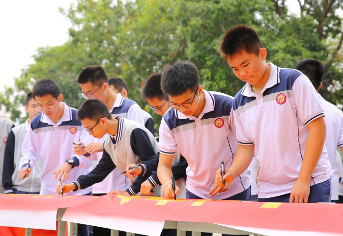 百日沖刺下戰書,宣誓立志戰中考,3月17、18日,初中部舉行八、九年級中考百日誓師大會,活動現場,同學們手拿“生地必勝”“不負芳華、迎戰中考”“沉著冷靜”等字樣的手舉牌,佩戴“學業有成”錦囊,為自己加油打氣,在老師和家長的鼓勵見證下,向100天后的中考發起沖刺。