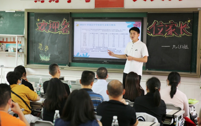 家長代表梁曉鴻女士告訴同學們,人生難得幾回搏,這個是你人生的第一博,老師和家長是你們最堅強的后盾,希望你們能調整心態,正視壓力,不怕困難,持之以恒,迎難而上,只要大家勇敢沖刺,全力以赴,就能取得勝利,考到心中的理想高中。