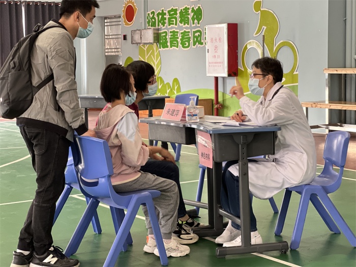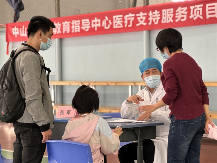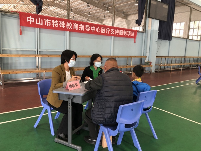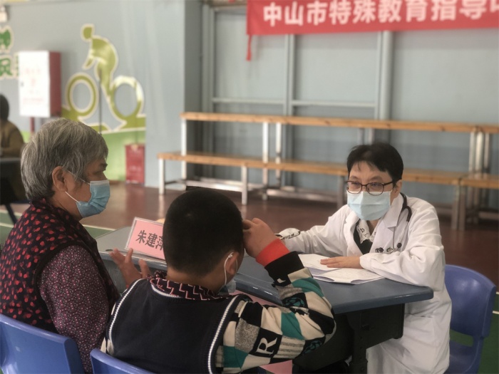 高院長表示博愛醫院全面貫徹全市高質量發展研討會等會議精神,以實干促發展、以行動求實效,發揮專業優勢,將優質醫療資源下沉服務特殊兒童群體。未來會在特殊學生個案的評估與指導、教師與家長培訓、特殊兒童常見障礙的社會宣導等方面提供專業的醫學指導,為中山特殊學生及其家長提供更優質的特殊教育和醫療康復服務,為孩子們的健康成長保駕護航。與此同時,兒童神經內科朱建萍主任、兒童康復科張軍醫生先行前往體育館,為有醫療服務需求的板芙、大涌、民眾、三角、三鄉、東區等9個鎮街送教上門學生和中山特校學生提供醫療服務。儀式結束后,賴春華科長也趕到了體育館,專家們分成三組同時進行問診,在詳細了解每一位孩子的病史、日常生活及居家訓練等情況后,耐心地為家長提供專業的醫學指導建議。