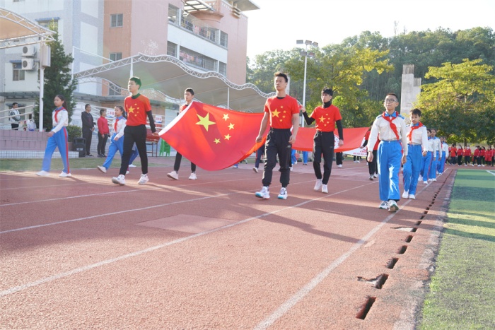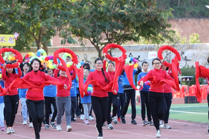 入場式上,各年級以“奮斗百年路 啟航新征程”為主題進行創意編導,融入慶祝中國共產黨成立一百周年的喜慶元素,傳承紅色基因,抒發愛國、愛黨深情。師生或手執花環,或揮舞彩帶,或身著盛裝,或高舉標牌,喊出了鏗鏘有力的氣勢,舞出了奮進新時代的風采。