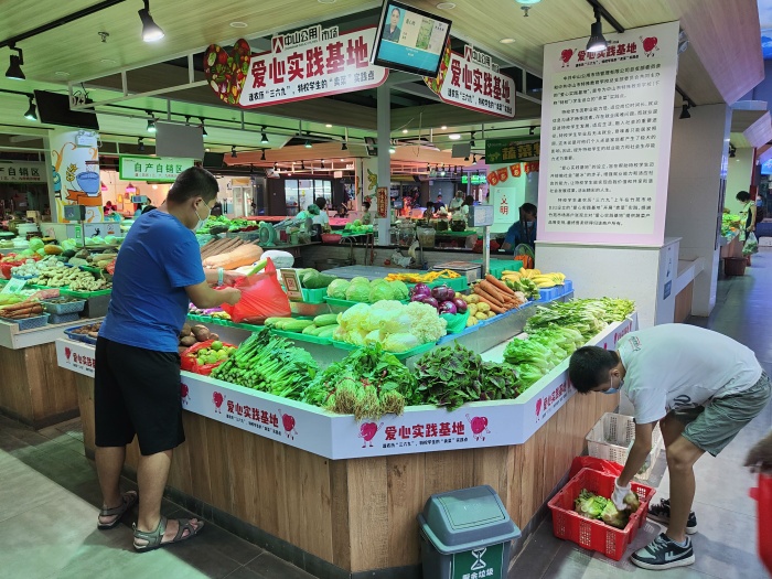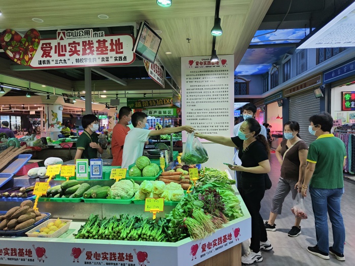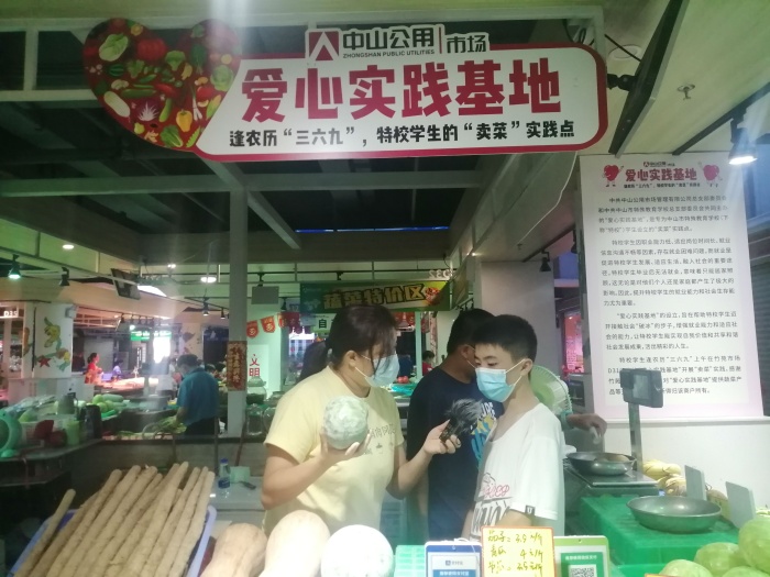 一直以來,中山市特殊教育學校認真貫徹落實黨史學習教育工作要求,把學習黨史同總結經驗、觀照現實、推動工作結合起來,切實把黨史學習教育成果轉化成為民辦實事解難事的實際行動,解決殘疾青少年急難愁盼的就業難題。學校在中山市委黨史學習教育第八巡回指導組的“牽線搭橋”下,與中匯集團通力合作,自暑假起,在竹苑市場正式啟動“愛心實踐基地”,旨在提高殘疾青少年的社會實踐能力和工作能力,促進其融入社會,實現自我價值。截至目前,已開展了近2個月的實踐活動。