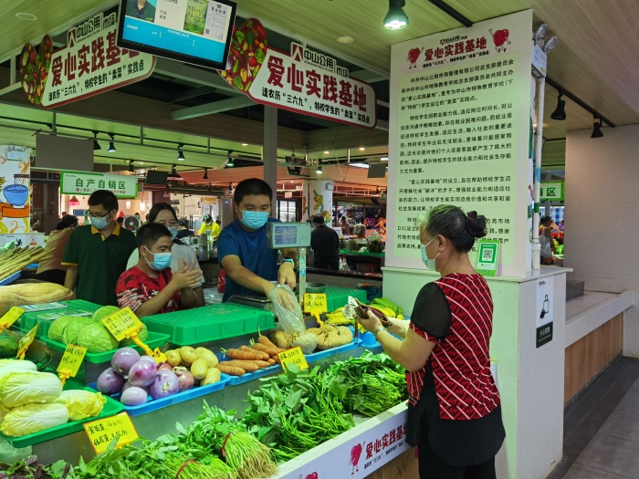 從畏縮到勇敢,從生疏到嫻熟,學生們在一步步成長,顧客們看著他們熟練規范的操作紛紛豎起大拇指。竹苑市場場長孔德賢對這群孩子們的勞動品質和學習能力也是贊不絕口:“一開始有點害羞,經過一段時間的學習和鍛煉后,他們如今已駕輕就熟、勝任工作。”一位前來買菜的阿姨接受記者采訪時,表示對孩子們的表現十分滿意:“如果不是這個宣傳板在這里,我真看不出他們有什么不一樣。”